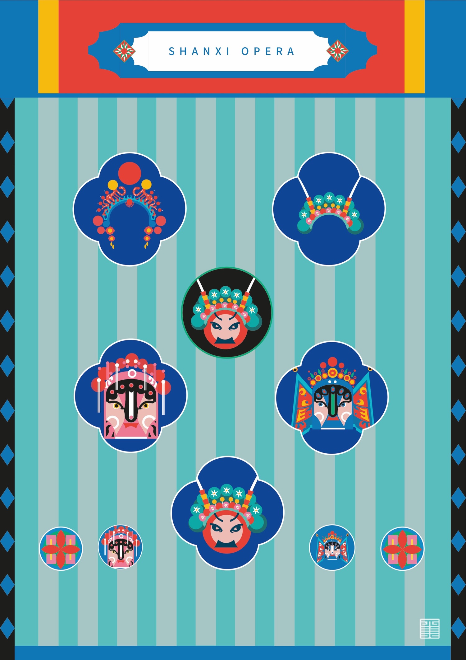 这次创作主要以围绕中国的传统文化为主,将我国乃至文明于世界的非物质文化遗产——陕西秦腔脸谱,剪纸文化,京剧,进行了元素的提取和创作。